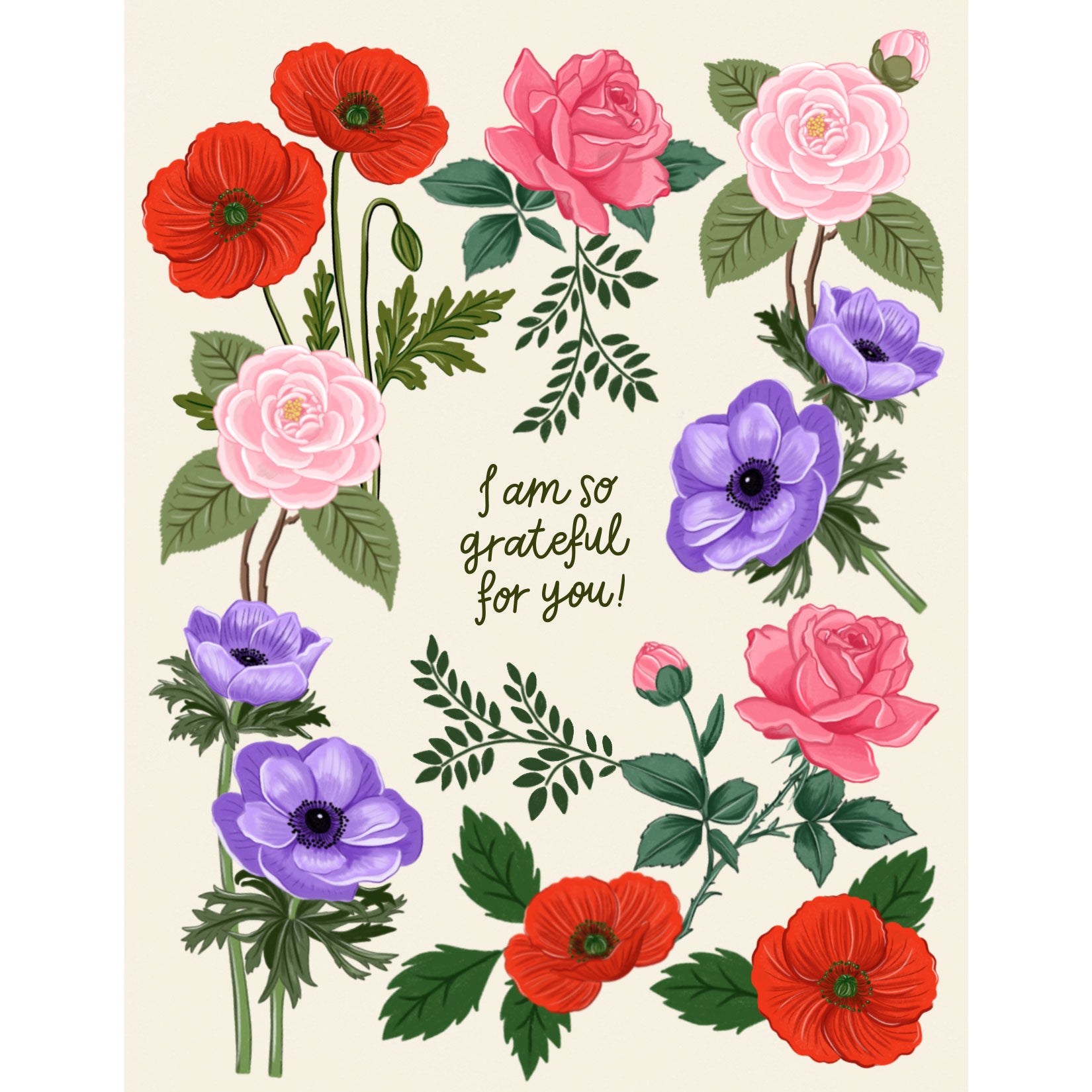 Illustrated card from our Thank You collection with a print on thick card stock.